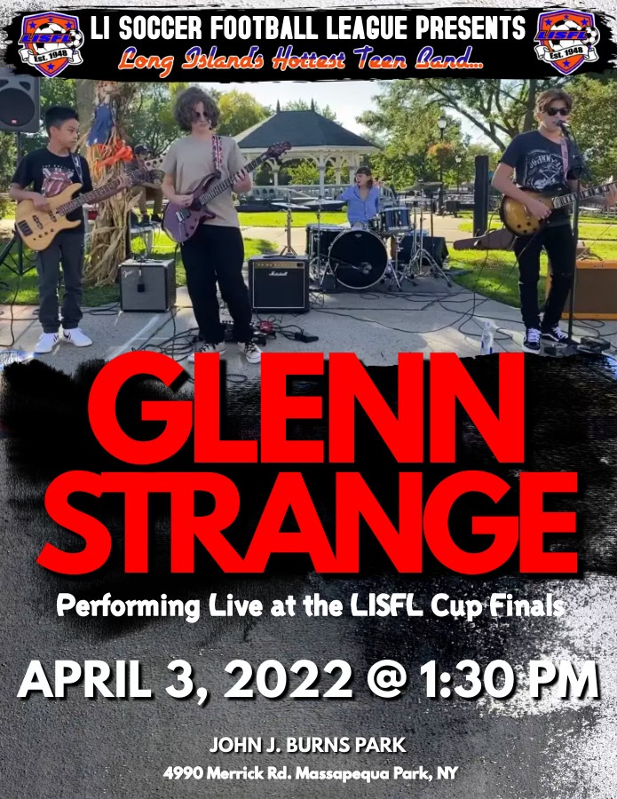 The LISFL Cup Finals will be on April 3, 2022 at John Burns Park in Massapequa, NY. LISFL is the largest Adult Soccer League on Long Island. The teenage band - The Glenn Strange Band will be performing for a free concert sponsored by the Long Island Soccer Football League at approximately 2:00 pm. Any questions please contact Rocco Avallone, President of LISFL.