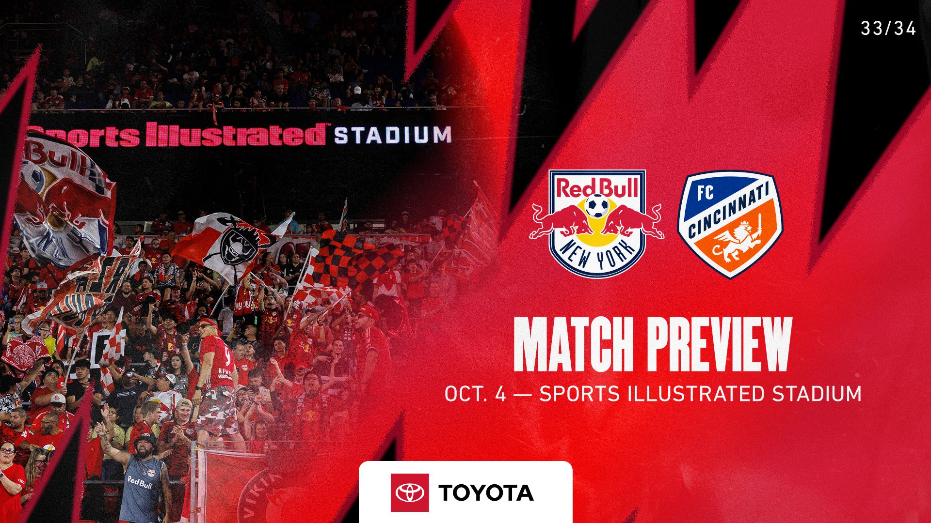 HARRISON, N.J. (October 3, 2025) – The New York Red Bulls (12-13-7, 43 pts.) face off against FC Cincinnati (18-9-5, 59 pts.) at Sports Illustrated Stadium on Saturday, October 4 for Fan Appreciation Night. Kickoff is set for 7:30 p.m. ET with coverage on MLS Season Pass on Apple TV in English and Spanish, and New York Red Bulls Radio presented by Sports Illustrated in English via the New York Red Bulls app and NewYorkRedBulls.com.