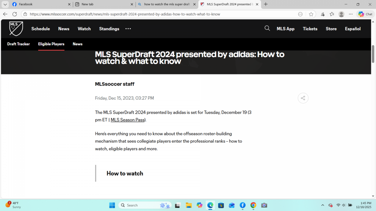 The MLS Super Draft 2025, will be shown live, or not, depending on who you go with, they do not even know the day or date of it. On their own site, it is stated to occur on the 19 of Jan., a Tues?
