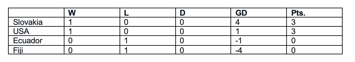 - Defender Josh Wynder picked up a yellow card vs. Ecuador. Should he be shown a second caution against Fiji, he will be suspended for the group stage finale vs. Slovakia.